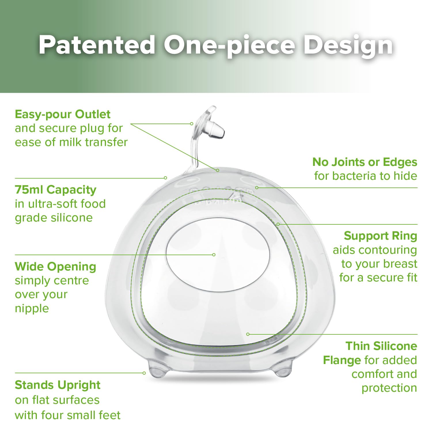 - It is completely portable and has small feet on the bottom that lets the Milk Collector stand upright on flat surfaces to prevent any spills after use.