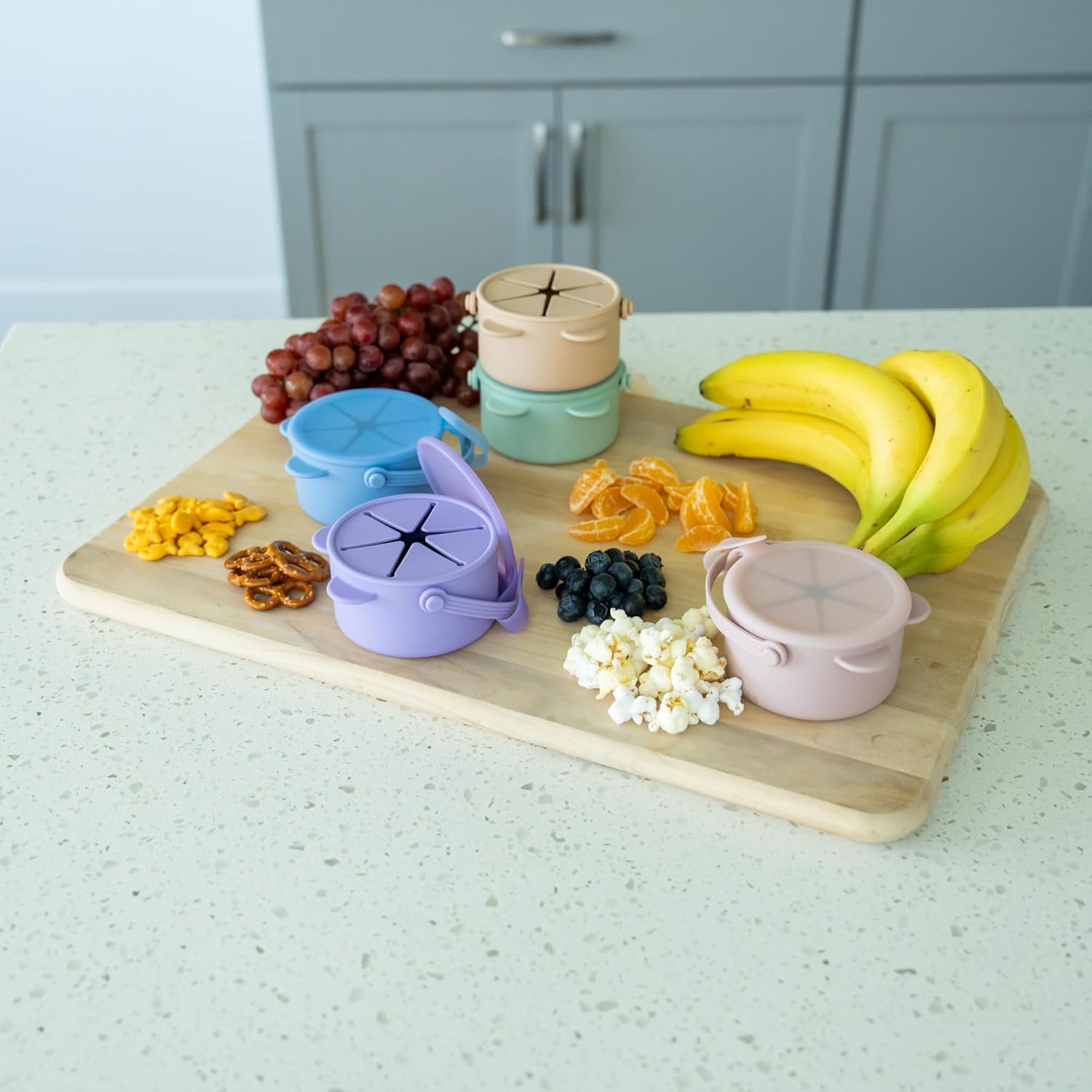 - Cradling Snacks & Surprises Alike: From crispy apple slices to fun toy soldiers, our travel snack container for toddlers are always ready to safeguard their little treasures; And the lid with each kids snack cup stops spills and unwanted intrusions