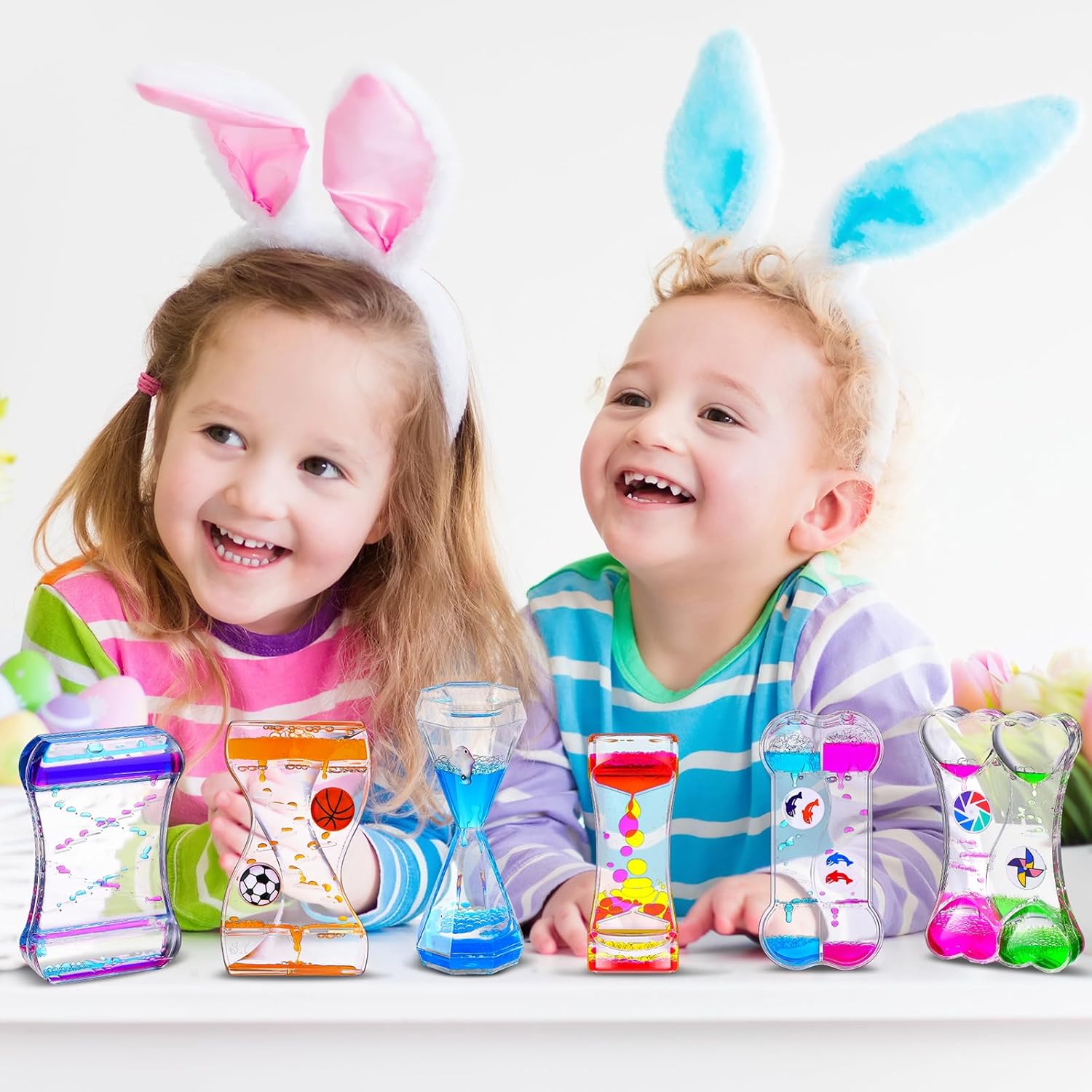 6 Pack Liquid Motion Bubbler Liquid Bubble Sensory Toys Colorful Oil Hourglass Fidget Toy Sensory Bottles Calming Toys Handheld Water Game for Boy Girl Autism ADHD Adults (Lively)