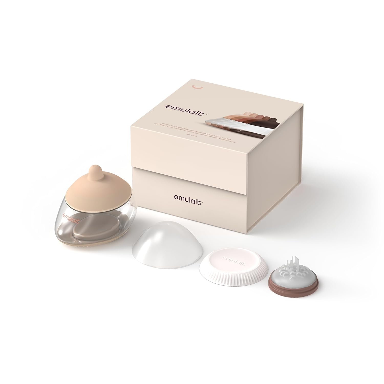 • Easy to Clean and Safe BPA-free - Featuring 3-part assembly and dishwasher-safe materials, Emulait bottles can be effortlessly cleaned, allowing you to cherish more moments with your baby. Each Anatomy Bottle (8oz/240ml) package includes: 1 Emulait Nipple, 1 Cap, 1 Lid, and 1 Responsive Flow Valve, all crafted with BPA-free, phthalate-free, and non-toxic materials for your baby’s safety.