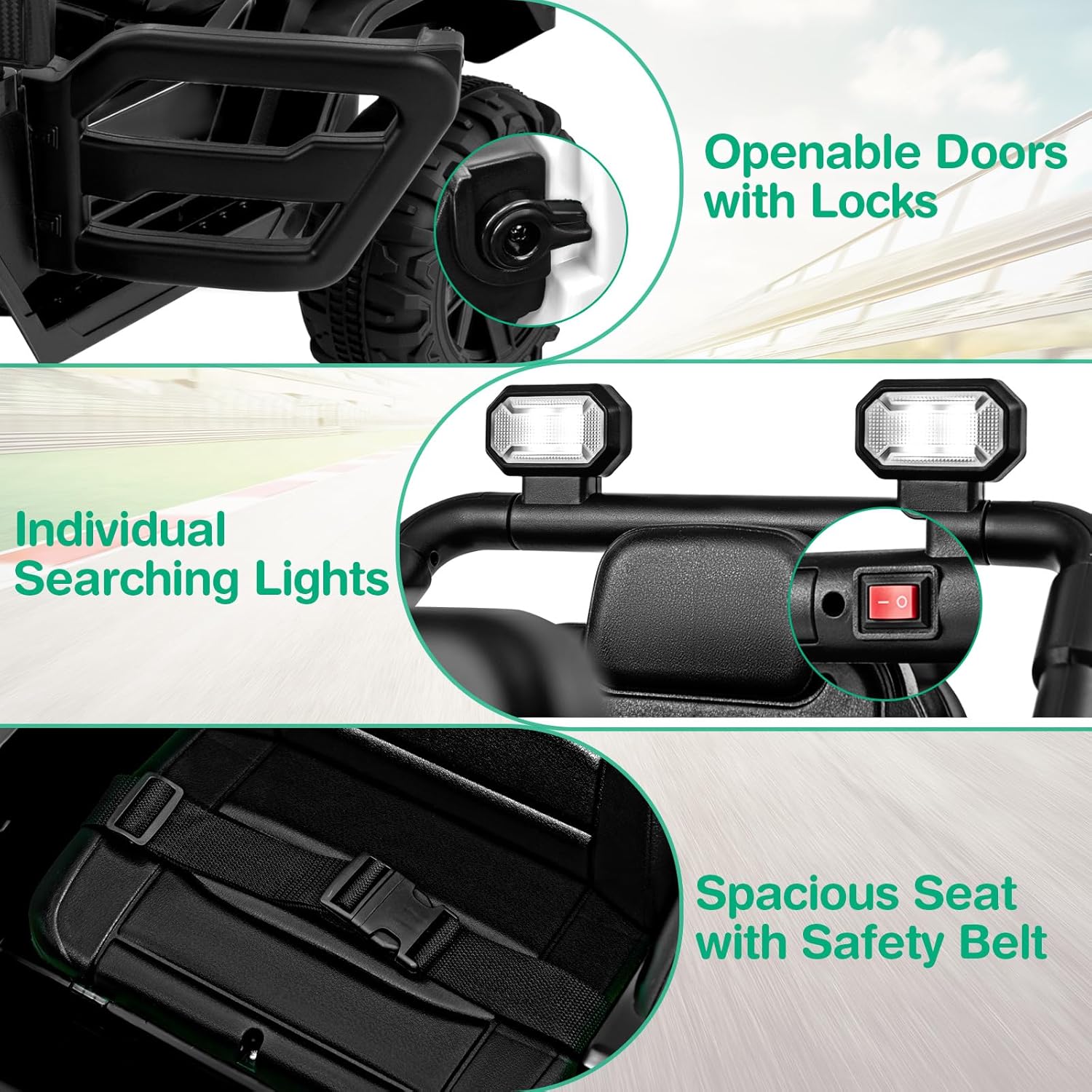 - 【Safe & Reliable Construction】 Constructed from BPA-free material, the electric ride on truck is equipped with adjustable safety belt, lockable doors to ensure durability and safety. It complies with ASTM and CPSIA standards, serving as a reliable and perfect gift for boys and girls over 3 years old.