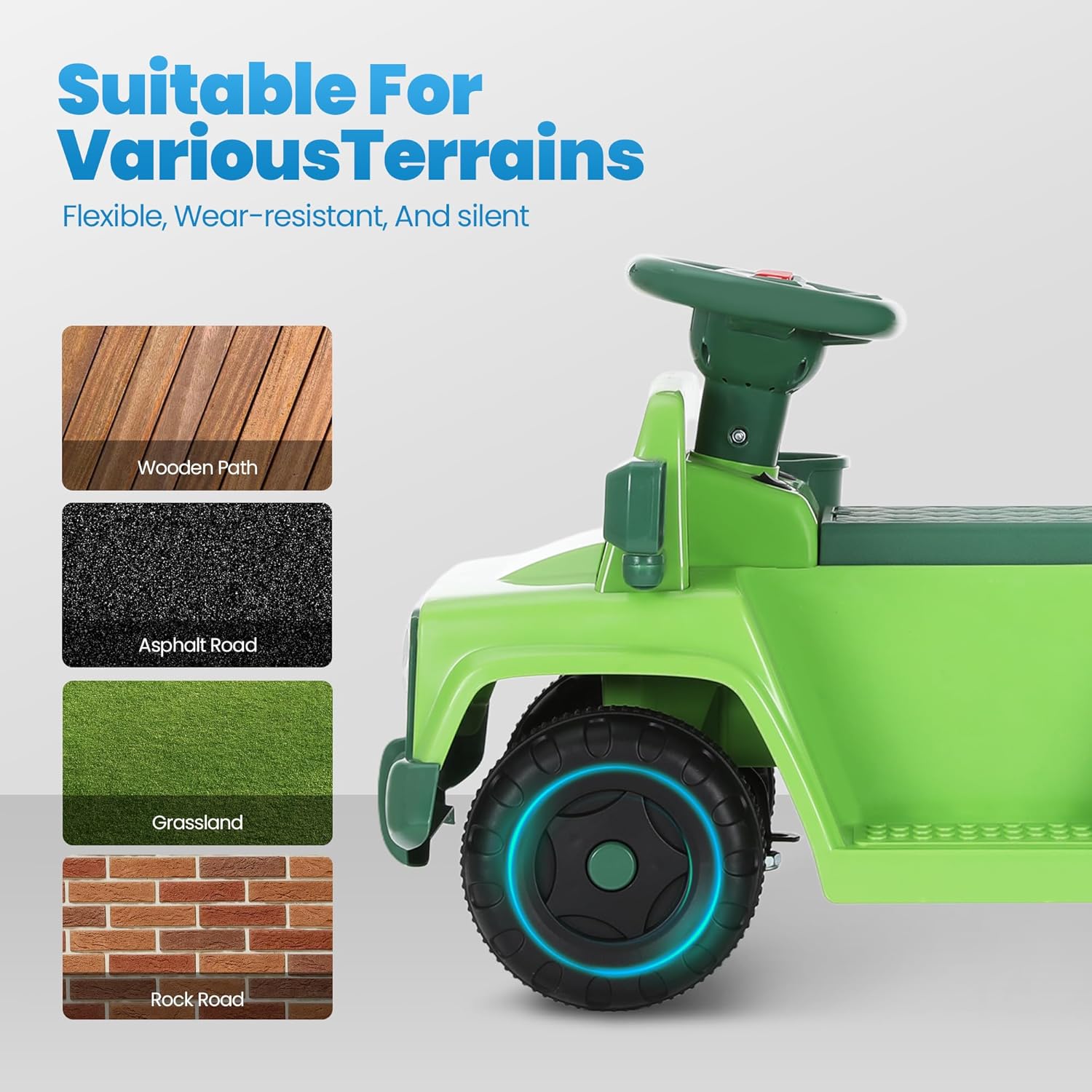 - 【Safe and Stylish Ride】 The Alphakids 6V Ride-On Car offers a perfect balance of fun and safety. With its LED lights, horn, and spacious storage, this car is ideal for toddlers 18 months+ to explore the world in style!