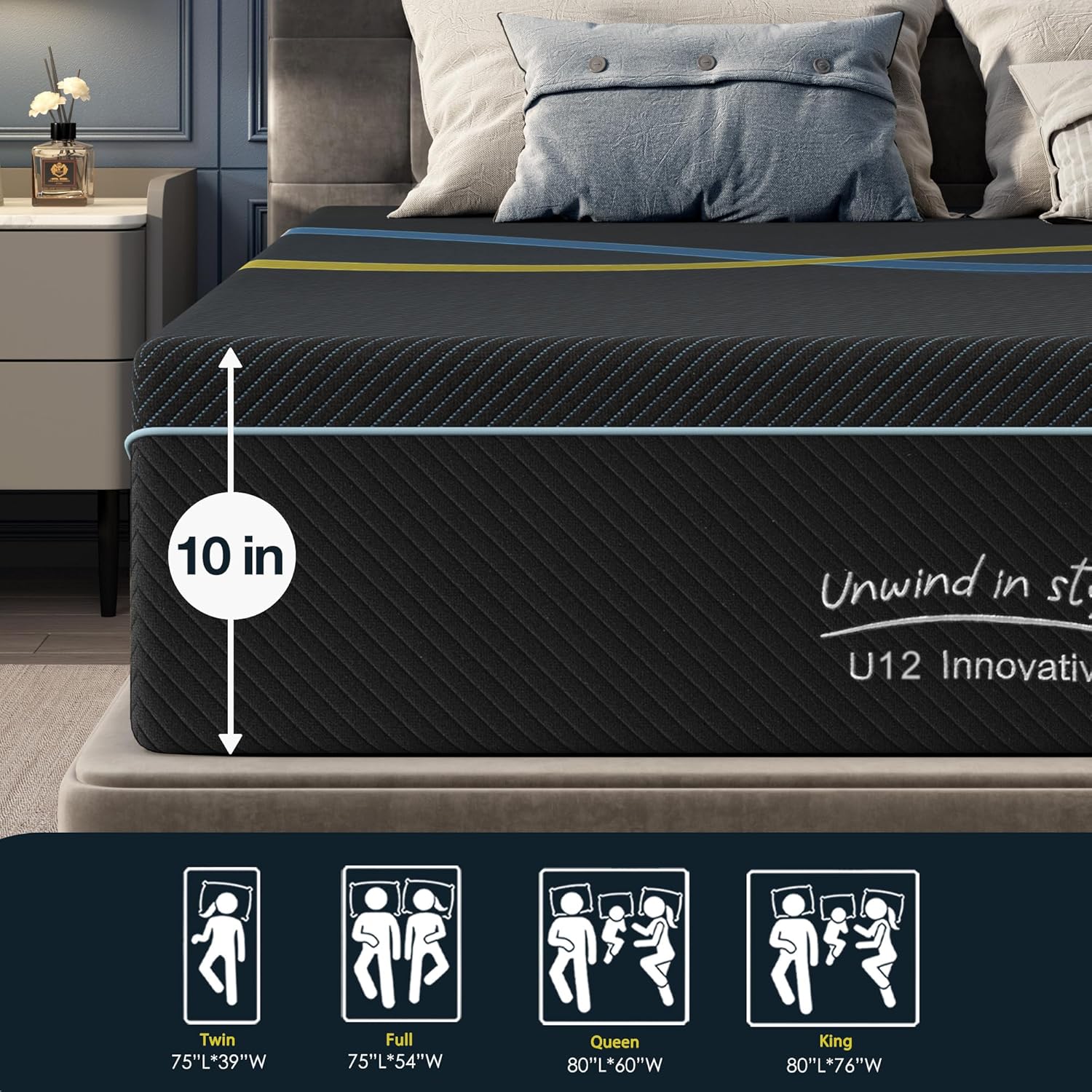 10 inch King Mattress Multi-Layer Memory Foam Mattress - Medium Firmness with Bamboo Charcoal & Green Tea Infusion